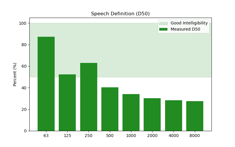 for speech. The simulation returned approximately 40% at 500 Hz, falling